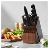 - το σετ περιλαμβάνει μαχαίρι καθαρισμού 4″, μαχαίρι προετοιμασίας 5,5″ με λεπτή άκρη, μαχαίρι ψωμιού 8″ : μαχαίρι σεφ 8″, ψαλίδι κουζίνας, ατσάλι ακονίσματος 9″, μπλοκ αποθήκευσης