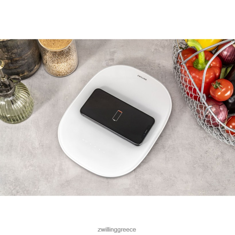 αυτή η σύγχρονη συσκευή είναι επίσης φορτιστής. με ενσωματωμένες δυνατότητες φόρτισης για συμβατές έξυπνες συσκευές, μπορείτε να φορτίζετε το smartphone ή το tablet σας ενώ εργάζεστε στην κουζίνα. για χρήση, απλώς τοποθετήστε τη συσκευή σας στο κέντρο της επιφάνειας της ζυγαριάς. δεν χρειάζονται καλώδια.