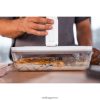 - μακρύ, ρηχό σχήμα σημαίνει ότι μπορεί να στοιβάζεται εύκολα στο ψυγείο και καταψύκτη για αποτελεσματική αποθήκευση.