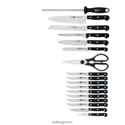 η κλασική σειρά zwilling twin gourment διαθέτει χάλυβα ακριβείας και μια ενιαία σταμπωτή κατασκευή. Η ειδική φόρμουλα zwilling, οι λεπίδες από χάλυβα υψηλής περιεκτικότητας σε άνθρακα χωρίς λεκέδες είναι ανθεκτικές, παραμένουν αιχμηρές και δεν σκουριάζουν. αυτό το σετ 18 τεμαχίων περιλαμβάνει μαχαίρια για κάθε εργασία κουζίνας που θα συναντήσετε συν οκτώ μαχαίρια για μπριζόλα. Το σετ περιλαμβάνει μαχαίρι απολέπισης 2,25″, μαχαίρι καθαρισμού 4″, 5″ οδοντωτό μαχαίρι, 6″ μαχαίρι, 6″ μαχαίρι για την αφαίρεση των οστών, μαχαίρι σεφ 8″, μαχαίρι ψωμιού 8″, μαχαίρια για μπριζόλα 8 – 4,5 ιντσών, ατσάλινο ψαλίδι κουζίνας, ψαλίδισμα , και μπλοκ από σκληρό ξύλο.