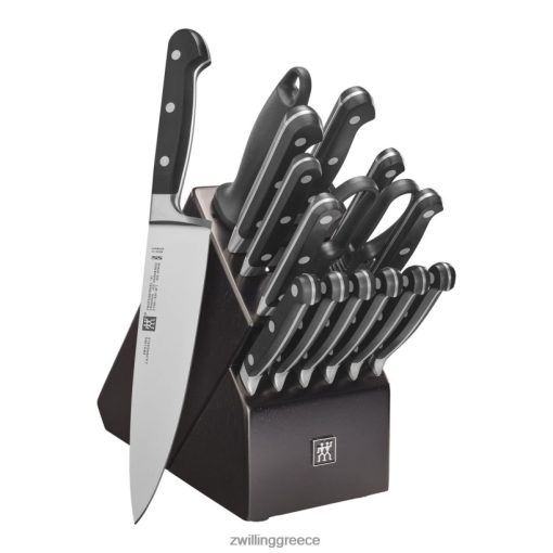 - 2,75″ μαχαίρι απολέπισης ράμφους πουλιού, 4″ μαχαίρι καθαρισμού, 5″ οδοντωτό βοηθητικό μαχαίρι, 5,5″ μαχαίρι προετοιμασίας με λεπτές άκρες, 7″ μαχαίρι σαντοκού he, 8″ μαχαίρι ψωμιού, 8″ μαχαίρι σεφ, μαχαίρι για μπριζόλα 6 x 4,5 ιντσών, διπλό ψαλίδι, διπλό ατσάλι 9 ιντσών, μπλοκ αποθήκευσης