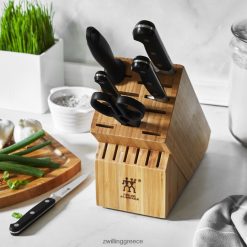 - το σετ περιλαμβάνει μαχαίρι καθαρισμού 4″, μαχαίρι προετοιμασίας 5,5″ με λεπτή άκρη, μαχαίρι ψωμιού 8″ : μαχαίρι σεφ 8″, ψαλίδι κουζίνας, ατσάλι ακονίσματος 9″, μπλοκ αποθήκευσης