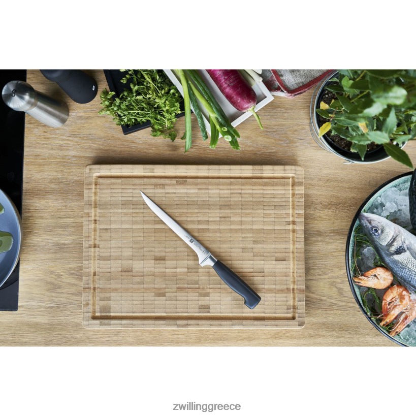 τα μαχαίρια τεσσάρων αστέρων είναι κατασκευασμένα από ιδιόκτητο ειδικό χάλυβα που έχει τελειοποιηθεί για σχεδόν 300 χρόνια. Σε συνδυασμό με την χαρακτηριστική τεχνική της zwilling σκληρύνσεως πάγου, αυτές οι λεπίδες φρυοντούρ είναι πιο σκληρές, πιο αιχμηρές, δεν λερώνονται ή θρυμματίζονται και διατηρούν την ευκρίνειά τους περισσότερο. σφυρηλατημένη ακρίβεια από ένα μόνο κομμάτι χάλυβα, τα μαχαίρια sigmaforge έχουν μια εξαιρετικά στιβαρή, ισορροπημένη και εύκαμπτη λεπίδα.