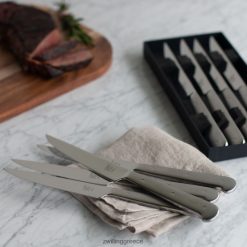 αυτό το σετ περιέχει οκτώ μαχαίρια για μπριζόλα 4,5 ιντσών συσκευασμένα σε ένα ελκυστικό μαύρο κουτί παρουσίασης που είναι ιδανικό για δώρο καθώς και για αποθήκευση. Σφυρηλατημένες με ακρίβεια από ένα μόνο κομμάτι ανοξείδωτου χάλυβα, αυτές οι ισχυρές λεπίδες διαθέτουν ευκρίνεια μεγάλης διάρκειας. από το porterhouse έως το τρίπτυχο, αυτά τα ανθεκτικά μαχαίρια κόβουν αβίαστα ακόμα και τις πιο χοντρές λωρίδες κρέατος.