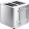 η τοστιέρα zwilling 2 θέσεων εξασφαλίζει ομοιόμορφο καφέ τοστ, bagels, muffins και πολλά άλλα, κάθε φορά που το χρησιμοποιείτε. Τέσσερα ξεχωριστά στοιχεία θέρμανσης και ισορροπημένη κατανομή θερμότητας διασφαλίζουν ότι κάθε φέτα ψωμιού είναι ομοιόμορφα φρυγανισμένη και από τις δύο πλευρές, ακόμη και μετά από επαναλαμβανόμενο ψήσιμο. το αποτέλεσμα: τοστ που είναι τραγανό εξωτερικά και απαλό εσωτερικά. και όταν τελειώσει, το τοστ δεν πετάει από την τοστιέρα. η λειτουργία μαλακής ανύψωσης εξασφαλίζει ότι γλιστράει απαλά προς τα πάνω και η ενσωματωμένη επιπλέον ανύψωση επιτρέπει την ασφαλή αφαίρεση ακόμη μικρότερων φετών. Το καθάρισμα είναι ένα τσιμπολόγημα. Τα ψίχουλα καταλήγουν στο συρτάρι για ψίχουλα που γλιστρά προς τα έξω για εύκολη αφαίρεση.