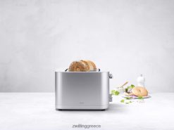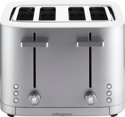 η φρυγανιέρα zwilling 4 θέσεων εξασφαλίζει ομοιόμορφο καφέ τοστ, bagels, muffins και πολλά άλλα, κάθε φορά που το χρησιμοποιείτε. οκτώ ξεχωριστές αντιστάσεις και ισορροπημένη κατανομή θερμότητας διασφαλίζουν ότι κάθε φέτα ψωμιού είναι ομοιόμορφα φρυγανισμένη και από τις δύο πλευρές, ακόμη και μετά από επαναλαμβανόμενο φρυγανισμό. το αποτέλεσμα: τοστ που είναι τραγανό εξωτερικά και απαλό εσωτερικά. και όταν τελειώσει, το τοστ δεν πετάει από την τοστιέρα. η λειτουργία μαλακής ανύψωσης εξασφαλίζει ότι γλιστράει απαλά προς τα πάνω και η ενσωματωμένη επιπλέον ανύψωση επιτρέπει την ασφαλή αφαίρεση ακόμη μικρότερων φετών. Το καθάρισμα είναι ένα τσιμπολόγημα. Τα ψίχουλα καταλήγουν στο συρτάρι για τα ψίχουλα που γλιστρά προς τα έξω για εύκολη αφαίρεση.