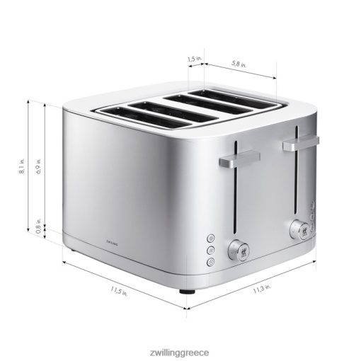 η φρυγανιέρα zwilling 4 θέσεων εξασφαλίζει ομοιόμορφο καφέ τοστ, bagels, muffins και πολλά άλλα, κάθε φορά που το χρησιμοποιείτε. οκτώ ξεχωριστές αντιστάσεις και ισορροπημένη κατανομή θερμότητας διασφαλίζουν ότι κάθε φέτα ψωμιού είναι ομοιόμορφα φρυγανισμένη και από τις δύο πλευρές, ακόμη και μετά από επαναλαμβανόμενο φρυγανισμό. το αποτέλεσμα: τοστ που είναι τραγανό εξωτερικά και απαλό εσωτερικά. και όταν τελειώσει, το τοστ δεν πετάει από την τοστιέρα. η λειτουργία μαλακής ανύψωσης εξασφαλίζει ότι γλιστράει απαλά προς τα πάνω και η ενσωματωμένη επιπλέον ανύψωση επιτρέπει την ασφαλή αφαίρεση ακόμη μικρότερων φετών. Το καθάρισμα είναι ένα τσιμπολόγημα. Τα ψίχουλα καταλήγουν στο συρτάρι για τα ψίχουλα που γλιστρά προς τα έξω για εύκολη αφαίρεση.