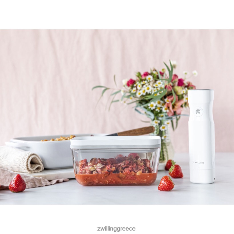 η αντλία κενού φρέσκου & εξοικονόμησης βρίσκεται στην καρδιά του έξυπνου συστήματος αποθήκευσης μέσω zwilling. η κομψή, αθόρυβη, ασύρματη αντλία κενού εξάγει τον αέρα από τα δοχεία κενού και τις σακούλες μας σε λίγα δευτερόλεπτα και διατηρεί τα αρώματα και τις βιταμίνες. σταματά αυτόματα μόλις δημιουργηθεί επαρκές κενό. εξοπλισμένη με μπαταρία ιόντων λιθίου μεγάλης διάρκειας ζωής, η αντλία μπορεί να φορτιστεί γρήγορα χρησιμοποιώντας το παρεχόμενο usb μέσω της υποδοχής φόρτισης που βρίσκεται στην αντλία.