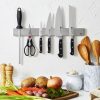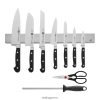 - το σετ περιλαμβάνει μαχαίρι καθαρισμού 4″, μαχαίρι προετοιμασίας 5,5″ με λεπτή άκρη, μαχαίρι ψωμιού 8″ : Μαχαίρι σεφ 8″, ψαλίδι κουζίνας, ατσάλι ακονίσματος 9″, ανοξείδωτη μαγνητική μπάρα μαχαιριών