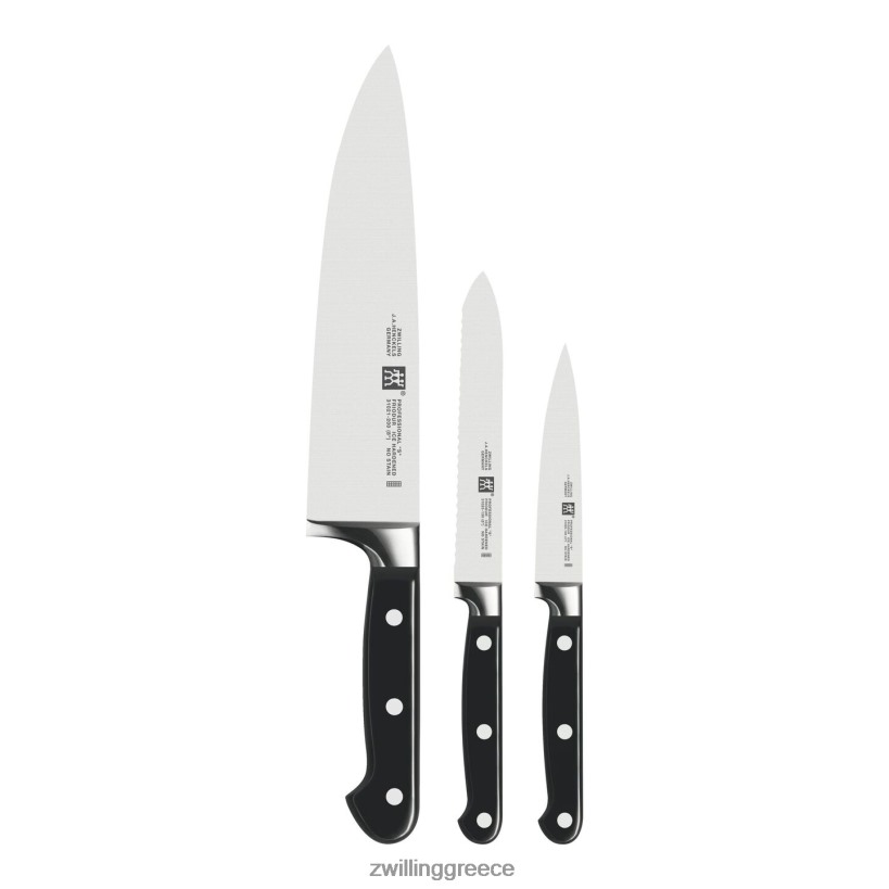 τα επαγγελματικά “s” είναι τα κλασικά μαχαίρια για την επαγγελματική κουζίνα. τα μαχαίρια είναι κατασκευασμένα από ιδιόκτητο χάλυβα ειδικής φόρμουλας που έχει τελειοποιηθεί για πάνω από 280 χρόνια. Σε συνδυασμό με την χαρακτηριστική τεχνική σκλήρυνσης πάγου του zwilling, αυτές οι λεπίδες φρυοντούρ είναι πιο σκληρές, πιο αιχμηρές, δεν λερώνονται ή θρυμματίζονται και διατηρούν την ευκρίνειά τους περισσότερο. ακονισμένη και φινιρισμένη στο χέρι από τους πιο έμπειρους τεχνίτες, η ελεγχόμενη με λέιζερ άκρη των μαχαιριών είναι απίστευτα αιχμηρή. το στιβαρό στήριγμα παρέχει τη σωστή ισορροπία και λειτουργεί ως προστατευτικό δακτύλων. Σφυρηλατημένα με ακρίβεια από ένα μόνο κομμάτι συμπαγούς χάλυβα, αυτά τα μαχαίρια με λαβή με τρία πριτσίνια προσφέρουν βέλτιστη ισορροπία και ασφαλή χειρισμό. επαγγελματίες σεφ σε όλο τον κόσμο εμπιστεύονται την παράδοση και την ποιότητα αυτών των εντυπωσιακών μαχαιριών.