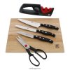 Τα μαχαίρια από ανοξείδωτο χάλυβα διπλής υπογραφής κάνουν την προετοιμασία εύκολη. το συμπαγές μαχαίρι προετοιμασίας 5,5 ιντσών είναι για προπαρασκευαστικές εργασίες ακριβείας στο χέρι και σε σανίδα κοπής.
