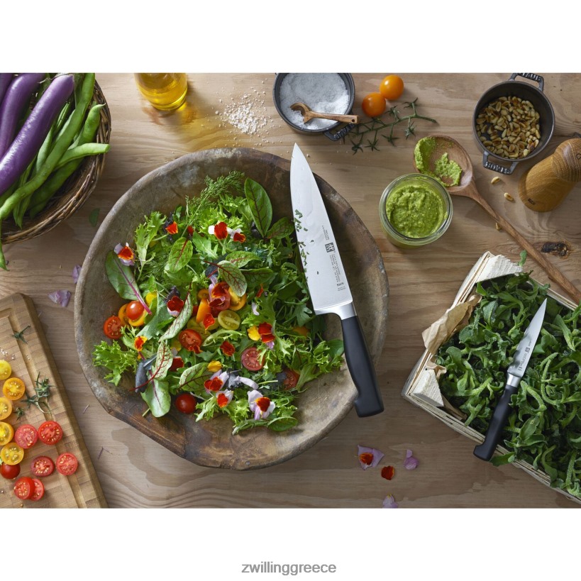 Τα μαχαίρια τεσσάρων αστέρων είναι κατασκευασμένα από ιδιόκτητο ειδικό χάλυβα που έχει τελειοποιηθεί για σχεδόν 300 χρόνια. Σε συνδυασμό με την χαρακτηριστική τεχνική της zwilling σκληρύνσεως πάγου, αυτές οι λεπίδες φρυοντούρ είναι πιο σκληρές, πιο αιχμηρές, δεν λερώνονται ή θρυμματίζονται και διατηρούν την ευκρίνειά τους περισσότερο. σφυρηλατημένη ακρίβεια από ένα μόνο κομμάτι χάλυβα, τα μαχαίρια sigmaforge έχουν μια εξαιρετικά στιβαρή, ισορροπημένη και εύκαμπτη λεπίδα.