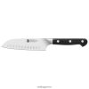 το zwilling pro είναι το πιο εύχρηστο μαχαίρι που διατίθεται στην αγορά. το μοναδικό σχήμα λεπίδας και το εργονομικό στήριγμα είναι το αποτέλεσμα 280 ετών εμπειρίας στην κατασκευή μαχαιριών και της αυστηρής μελέτης του τρόπου χρήσης των μαχαιριών. ένα μοναδικό κυρτό στήριγμα υποστηρίζει την επαγγελματική λαβή με τον αντίχειρα και τον δείκτη στη λεπίδα, για ασφαλή κοπή και λιγότερη κούραση. η λεπίδα επανασχεδιάστηκε με μια ευρύτερη καμπύλη στο μπροστινό μέρος για να διευκολύνει την λικνιζόμενη κίνηση της δυτικής κοπής, ενώ η ίσια πλάτη είναι ιδανική για την ασιατική κίνηση κοπής. όλο το μήκος της λεπίδας μπορεί να χρησιμοποιηθεί κατά την κοπή και μπορεί να ακονιστεί από το στήριγμα μέχρι την άκρη σχεδιασμένο στην Ιταλία από την matteo thun και κατασκευασμένο στη Γερμανία από την zwilling j.a. henckels, η εταιρεία που θέτει τα πρότυπα για εξαιρετικά μαχαιροπίρουνα παγκοσμίως. Το σετ περιλαμβάνει μαχαίρι 2,75″ για ράμφος πουλιού, μαχαίρι καθαρισμού 3″, μαχαίρι καθαρισμού 4″, βοηθητικό μαχαίρι 5″ οδοντωτό, μαχαίρι santoku 5″, μαχαίρι santoku 7″, μαχαίρι σεφ 8″, μαχαίρι ψωμιού 8″, 6 x 4 knife. , ψαλίδι κουζίνας, ακόνισμα stχέλι και μπλοκ σκληρού ξύλου.