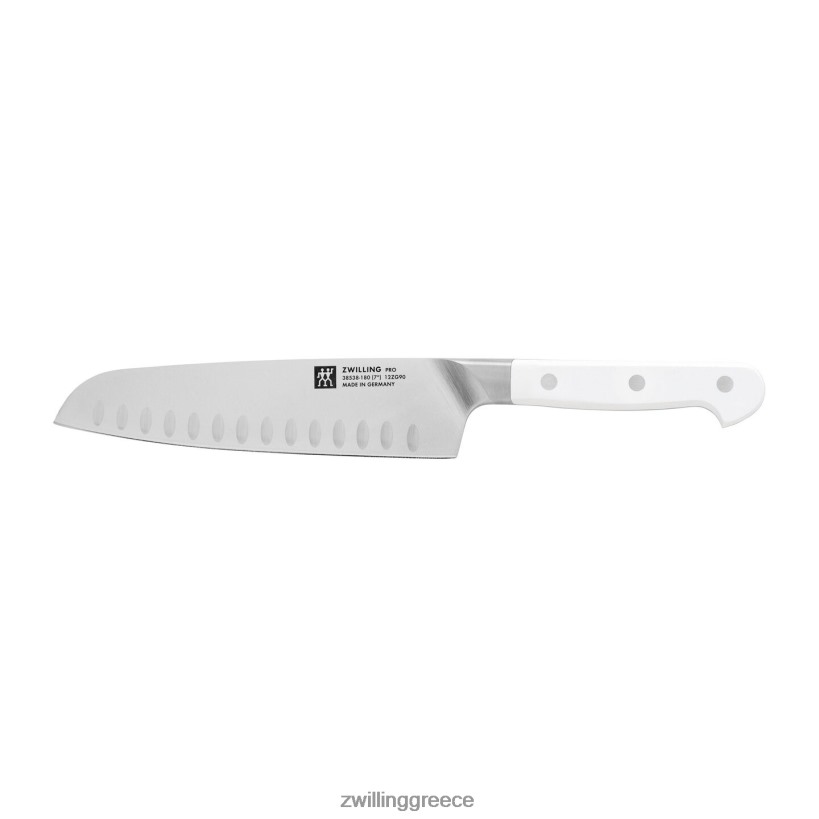 Το zwilling pro, το πιο φιλικό μαχαίρι στην αγορά, είναι τώρα διαθέσιμο με κομψές λευκές λαβές. Το zwilling pro le blanc μπορεί να υπερηφανεύεται για ένα μοναδικό κυρτό στήριγμα που λειτουργεί ως προέκταση του χεριού, υποστηρίζοντας την επαγγελματική λαβή, με τον αντίχειρα και τον δείκτη στη λεπίδα, για ασφαλή κοπή και λιγότερη κούραση. η λεπίδα σχεδιάστηκε με φαρδύ cuRve στο μπροστινό μέρος για να διευκολύνει την λικνιζόμενη κίνηση της δυτικής κοπής, ενώ η ευθεία πλάτη είναι ιδανική για την ασιατική κίνηση κοπής. όλο το μήκος της λεπίδας μπορεί να χρησιμοποιηθεί κατά την κοπή και μπορεί να ακονιστεί από τη βάση μέχρι την άκρη.