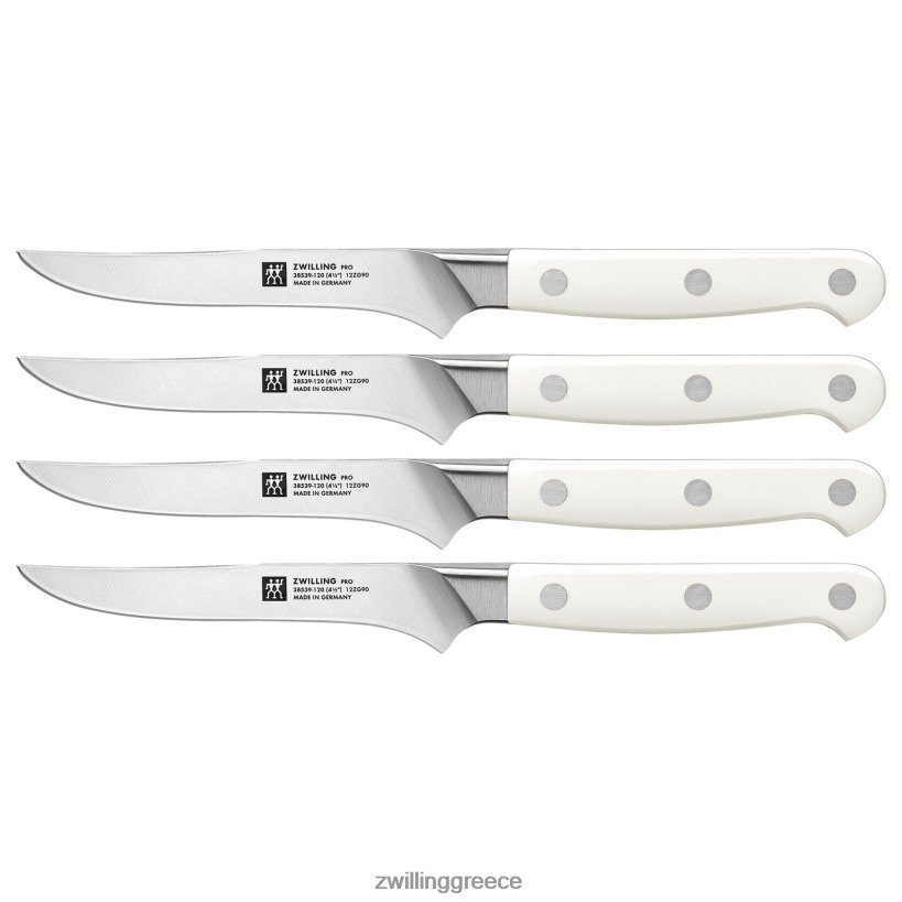 παρουσιάζοντας ένα κομψό νέο χρώμα για το zwilling pro. Τώρα, το zwilling pro, το πιο εύχρηστο μαχαίρι της αγοράς, διατίθεται με κομψές λευκές ματ λαβές. παρουσιάζοντας το zwilling pro le blanc. η σειρά pro le blanc είναι διαθέσιμη σε μια ποικιλία σχημάτων μαχαιριών, συμπεριλαμβανομένου του πάντα χρήσιμου μαχαιριού 4 ιντσών και του “εργαζομένου της κουζίνας”, του μαχαιριού του σεφ 8 ιντσών. Επιπλέον, μπορεί να αγοραστεί σε δύο εφοδιασμένα τεμάχια μαχαιριών, το ένα με αυτοακονιζόμενες υποδοχές. Η σειρά pro le blanc διατίθεται επίσης βολικά με τον μικρότερο, ελαφρύτερο σχεδιασμό μας για τον σεφ 7 ιντσών και το santoku 7 ιντσών. Τα λεπτά μαχαίρια pro le blanc διαθέτουν μεσαίου μεγέθους λαβή, προφίλ λεπίδας 9% μικρότερο και βάρος 24% ελαφρύτερο από τα αρχικά μας pro μαχαίρια. είναι ιδανικά για μικρότερα χέρια. και το μικρότερο βάρος παρέχει αυξημένη ευκινησία, εργονομία και άνεση. Το zwilling pro διαθέτει ένα μοναδικό κυρτό στήριγμα που λειτουργεί ως προέκταση του χεριού, υποστηρίζοντας την επαγγελματική λαβή, με αντίχειρα και δείκτη fiΝγκέρ στη λεπίδα, για ασφαλές κόψιμο και λιγότερη κούραση. η λεπίδα σχεδιάστηκε με μια ευρεία καμπύλη στο μπροστινό μέρος για να διευκολύνει την κουνιστή κίνηση της δυτικής κοπής, ενώ η ίσια πλάτη είναι ιδανική για την ασιατική κίνηση κοπής. όλο το μήκος της λεπίδας μπορεί να χρησιμοποιηθεί κατά την κοπή και μπορεί να ακονιστεί από τη βάση μέχρι την άκρη.